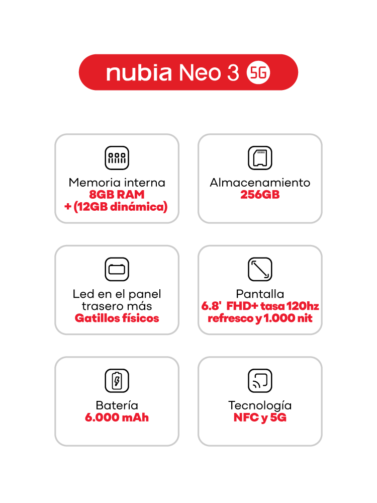 RAM: 8 GB físicas + 12 GB ampliables quedando un total de 20 GB.